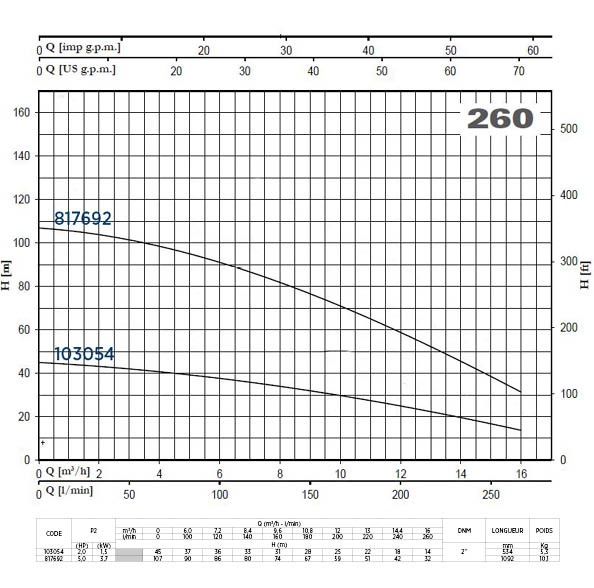 Hydraulique 250 l/min pour pompes de forage de diamètre 4’’ pour usages industriels ou agricoles