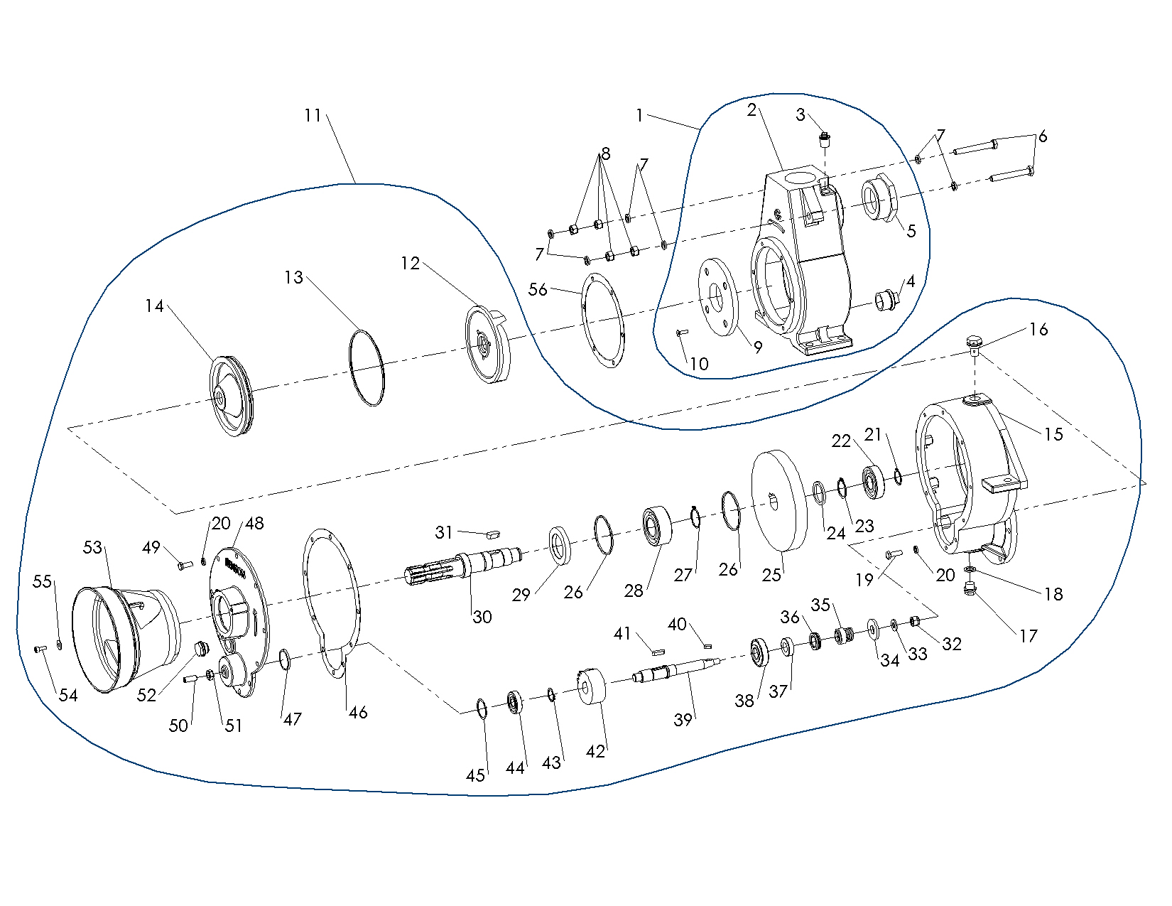 -Pompe auto amorçante avec palier et arbre nu