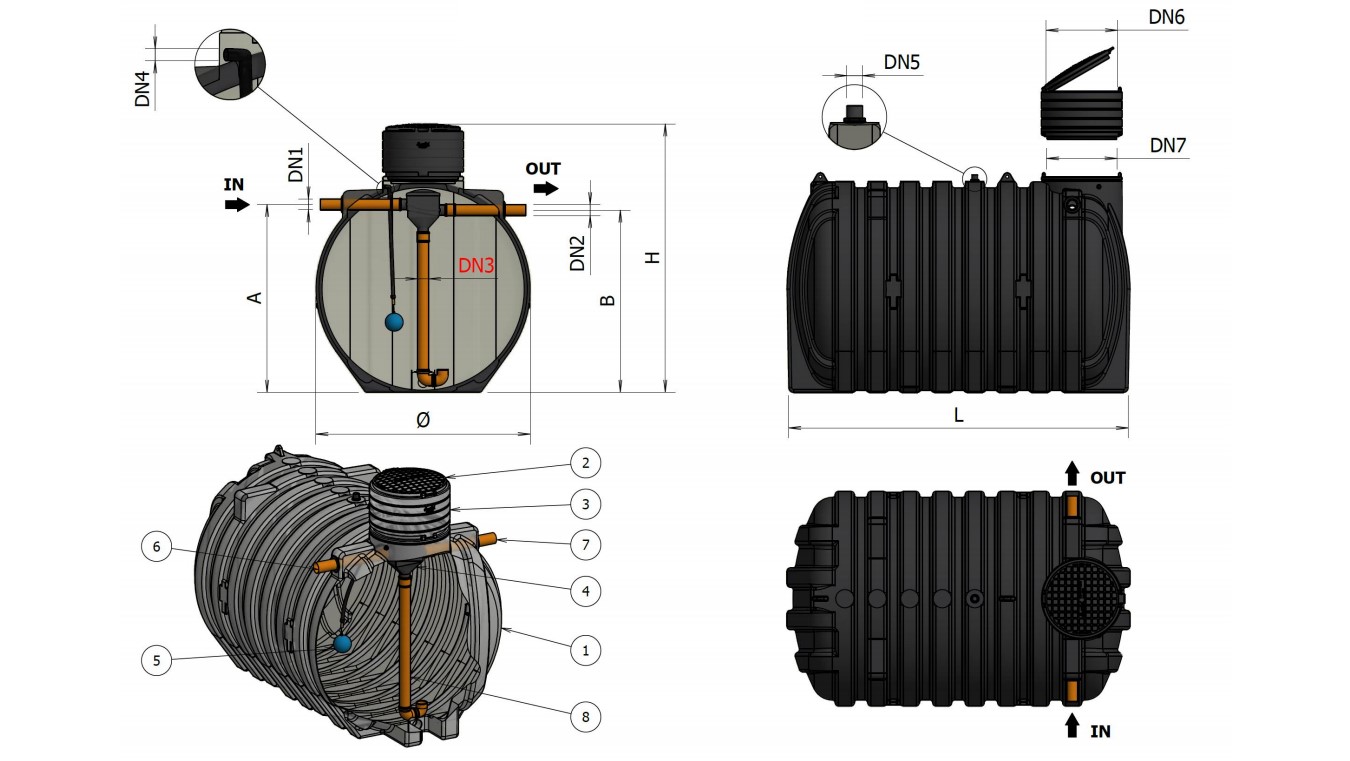 - Cuve, réhausse, filtre et couvercle en Polyétylène