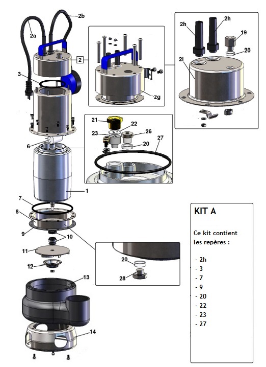 COUVERCLE COMPLET ASSEMBLE POUR POMPE DE RELEVAGE