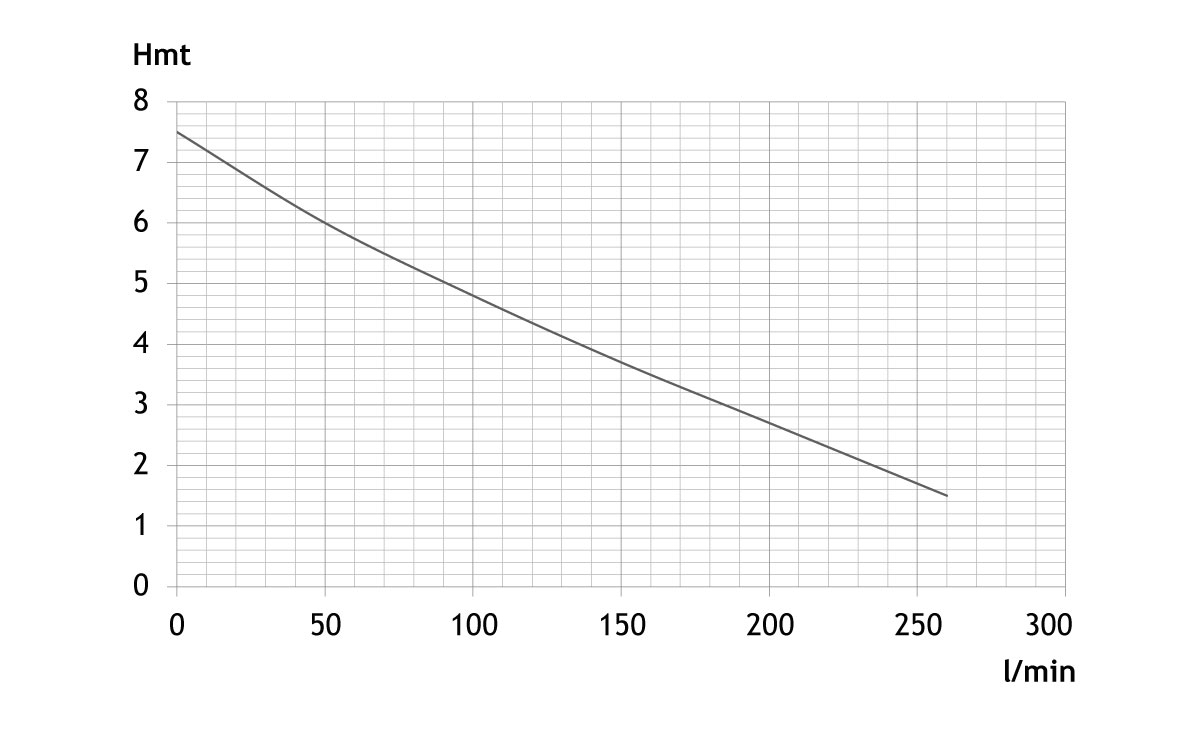 Pour HMT 7,5 mètres = débit de 0 m3/h ; 0 l/min