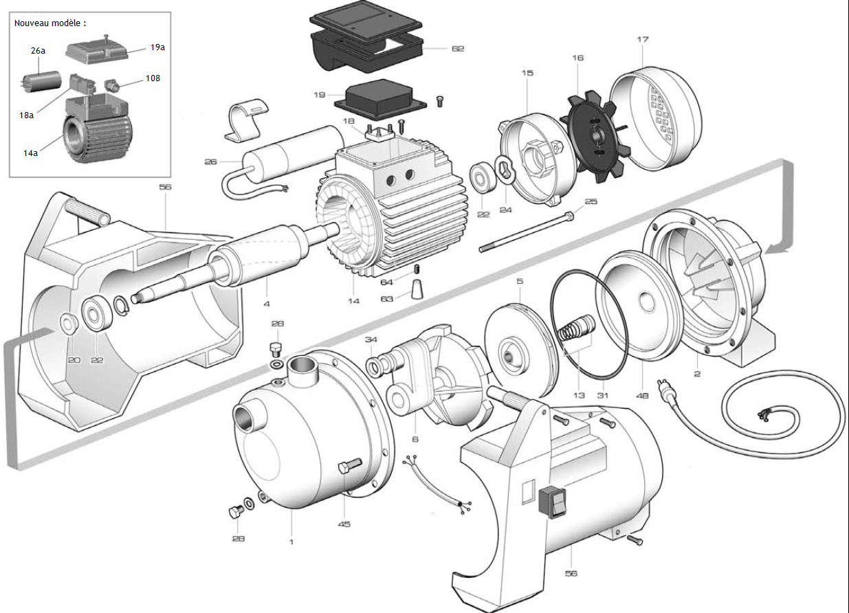 "Pompe auto-amorçante de type centrifuge, apte à l’approvisionnement d’eau (même si mélangée à des gaz) dans les petites installations domestiques, l’accouplement à des réservoirs, le transfert de liquides et le vidage de réservoirs.