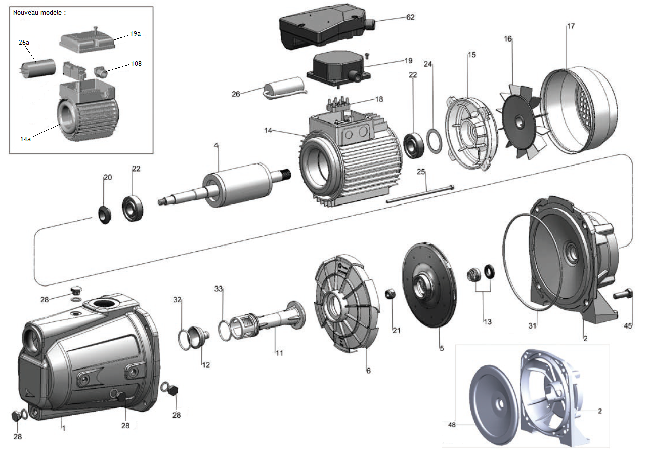-Moteur industriel fermé, IP44, classe F, avec protection thermique