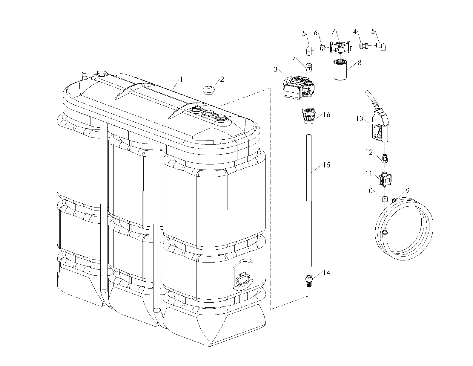 ATTENTION : La pompe fuel est montée sur la canne d'apiration (voir photo), nous vous recommandons de fixer la cuve au sol grâce à notre kit sanglage 145574