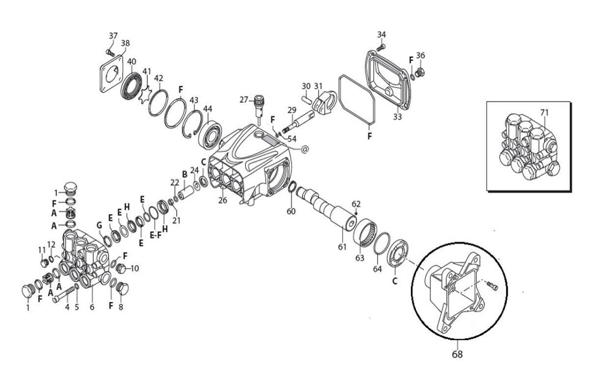 TETE DE POMPE PREMONTE POUR RRV 3G 3,5G ET 4G36