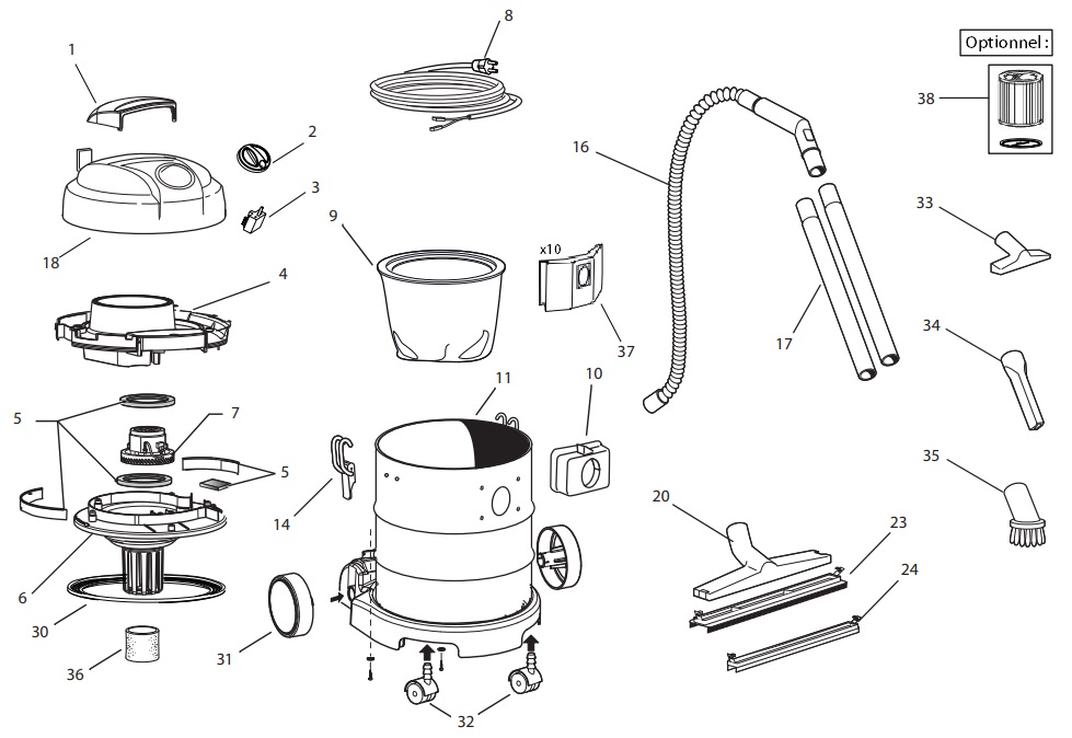 Conçu pour l’aspiration d’éléments liquides et solides dans le cadre d’un usage quotidien et régulier.