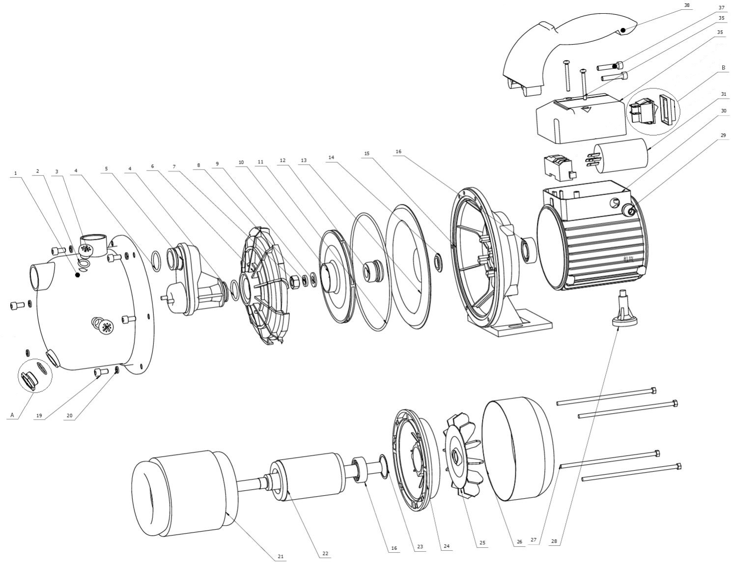 COUVERCLE DE BOITE A BORNE POUR POMPE 230V JET 0,75KW