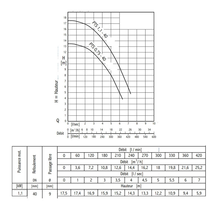 Pour HMT 17,5 mètres = débit de 0 m3/h ; 0 l/min