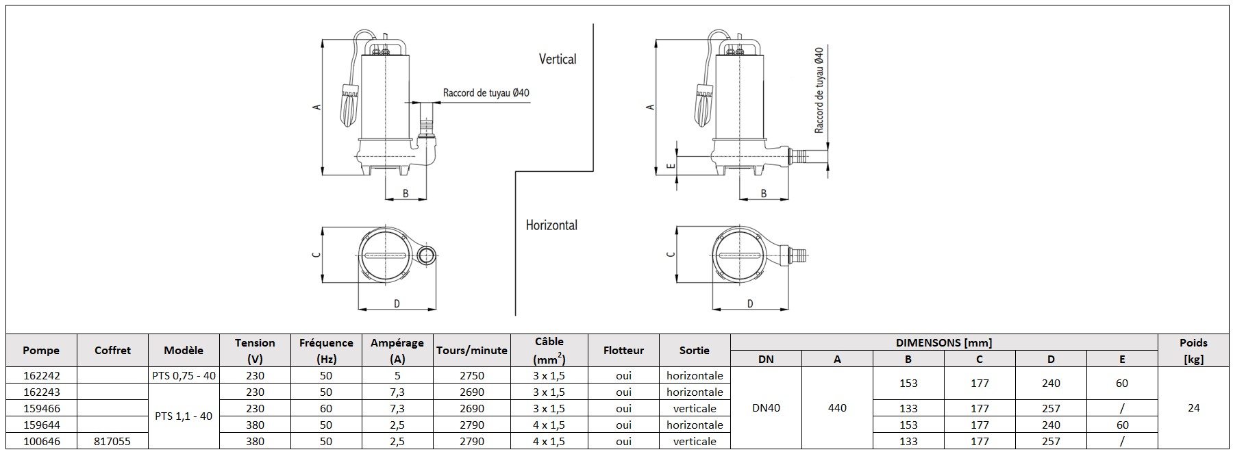> Doit travailler en immersion complète dans le liquide pompé (qui assure de l'extérieur le refroidissement du moteur)