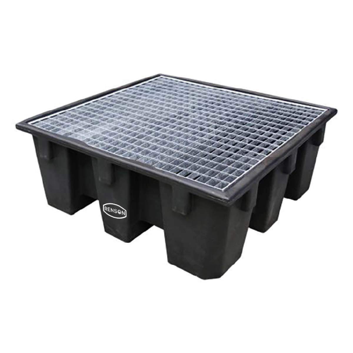 Le bac de rétention de 450 litres est conçu pour contenir quatre fûts. Il est fabriqué en polyéthylène haute densité (PEHD) avec un caillebotis amovible disponible en acier galvanisé ou en PEHD. Le bac a des dimensions de 1300 x 1300 x 485 mm et peut supporter une charge de 1100 kg. Il est emboîtable et équipé de passages de fourches sur les quatre côtés pour une manipulation facile. Ce bac est idéal pour optimiser l'espace de stockage et de transport.