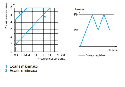 Plage de réglage du point haut (PH) : 1…6 bar (14,5…87 psi)