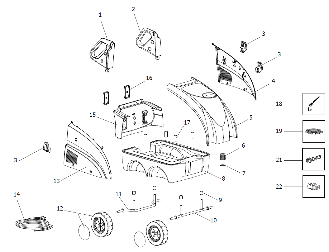 Equipé de roues pleines permettant un stockage prolongé de la machine sans déformation des roues