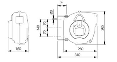 Sa butée est réglable pour l'adapter à son implantation. Il pivote sur 150° et possède une trappe de service, évitant à l'opérateur d'ouvrir la coque au cas où le remplacement du ressort du cliquet serait nécessaire.