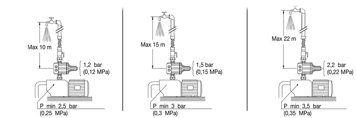 Effectuer tous les branchements électriques, vérifier que la pompe est correctement amorcée, ouvrir un robinet et mettre sous tension.