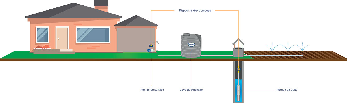 Protection manque d’eau : il permet d’arrêter la pompe en cas de manque d’eau (anti marche à sec)