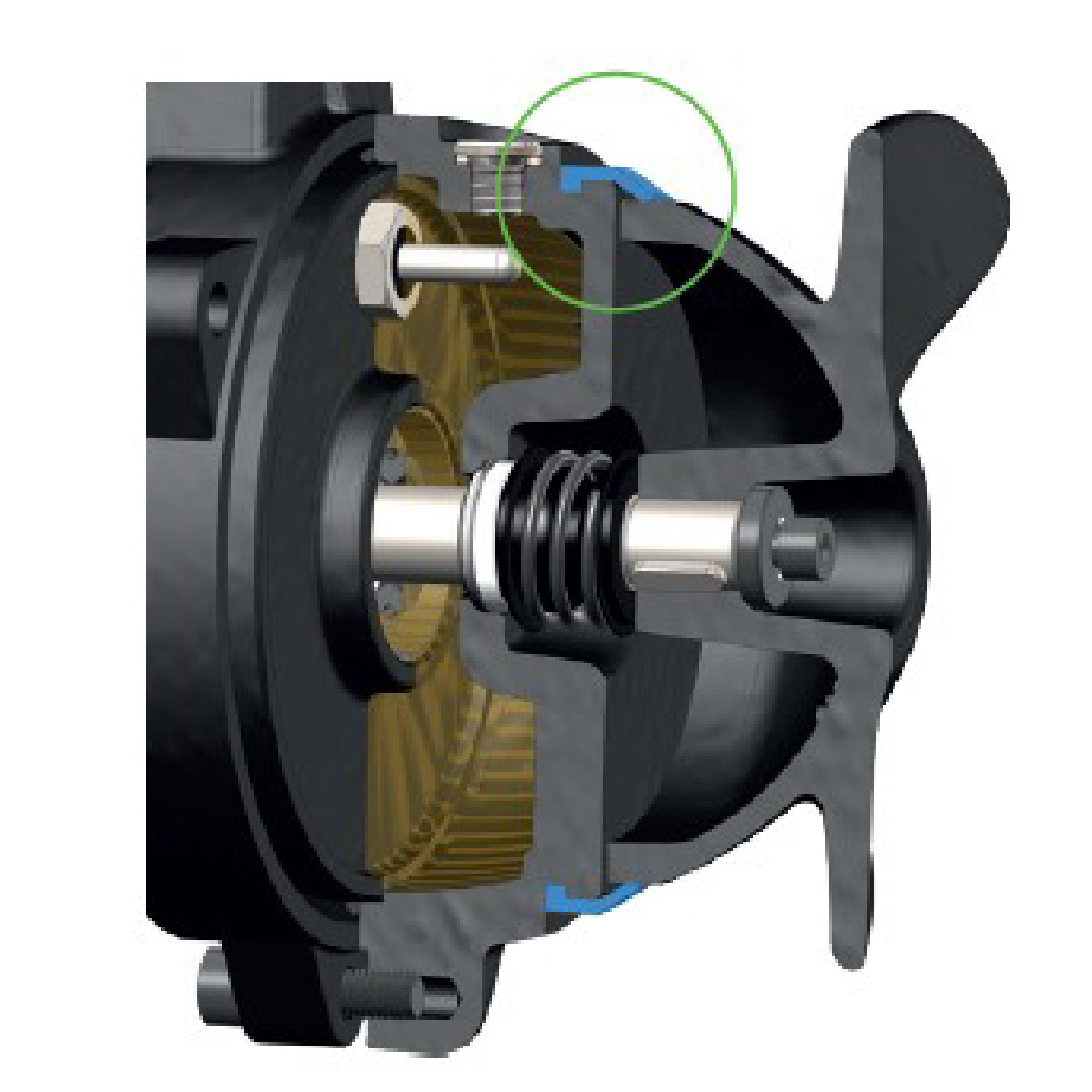 L'anneau déflecteur spécial évite les problèmes de blocage et protège la garniture mécanique des corps solides et filamenteux