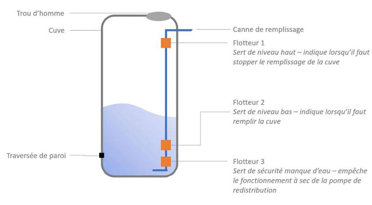 Sert de niveau bas – indique lorsqu’il faut remplir la cuve