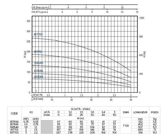 Pompe de forage de diamètre 4’’ 60 l/min à bain d'eau monophasée 1.5kW pour usages industriels ou agricoles (hydraulique + moteur à bain d'eau)