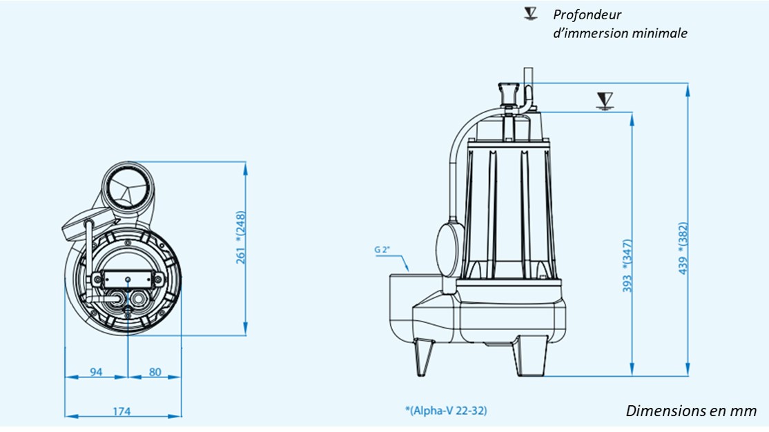 > Température du liquide à pomper : maximum 40°C pour une pompe totalement immergée