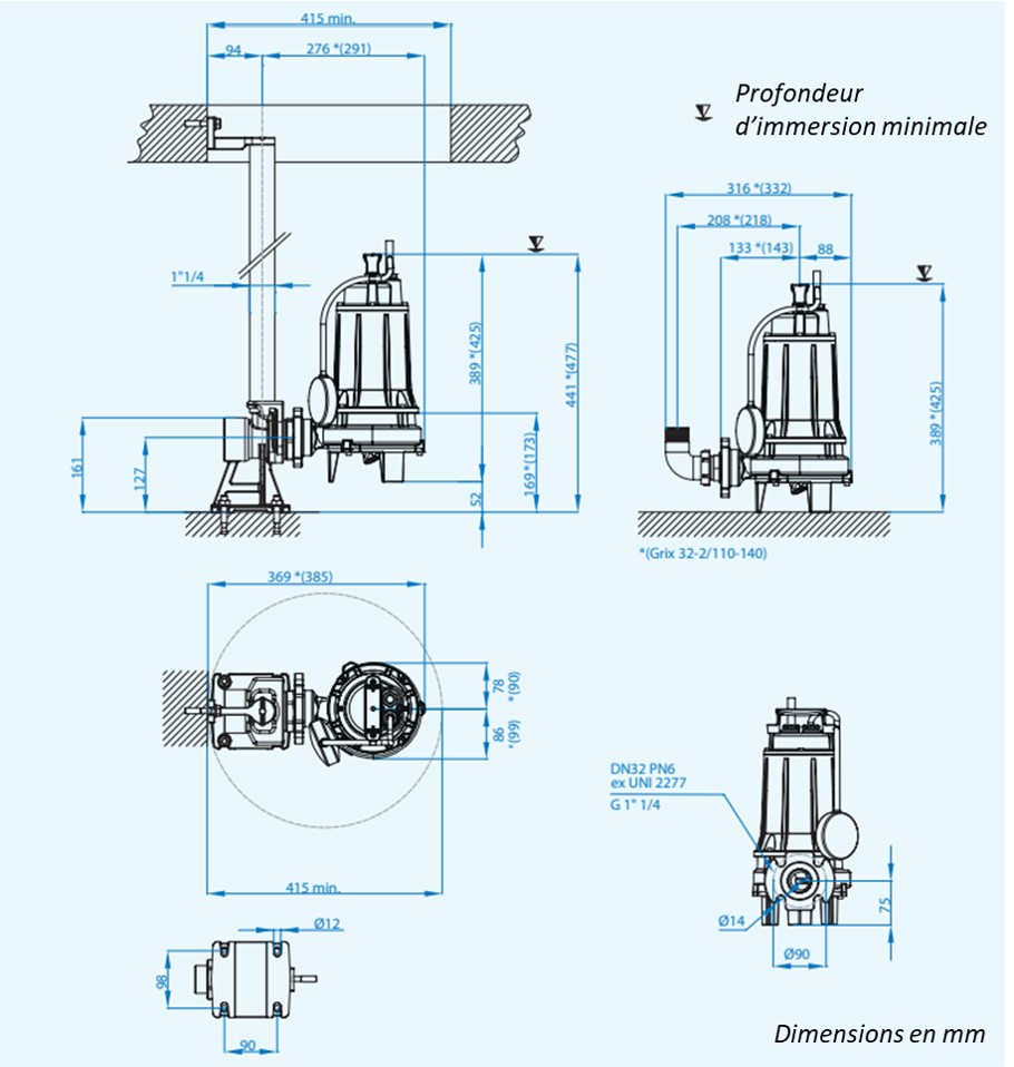 > Température du liquide à pomper : maximum 40°C pour une pompe totalement immergée