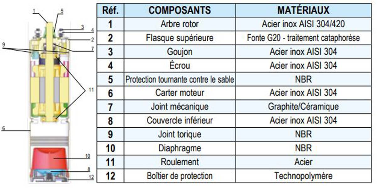 - Moteur asynchrone 2 pôles, triphasés, encapsulé, à bain d'huile