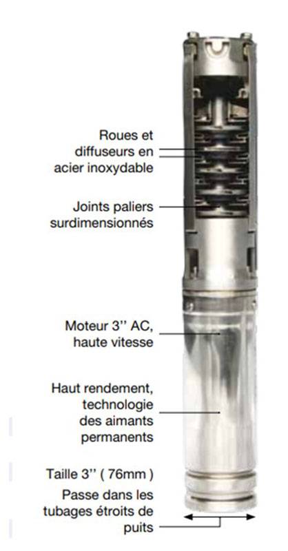 - Robustesse unique : la seule hydraulique 3’’ avec des roues et des diffuseurs en acier inoxydable