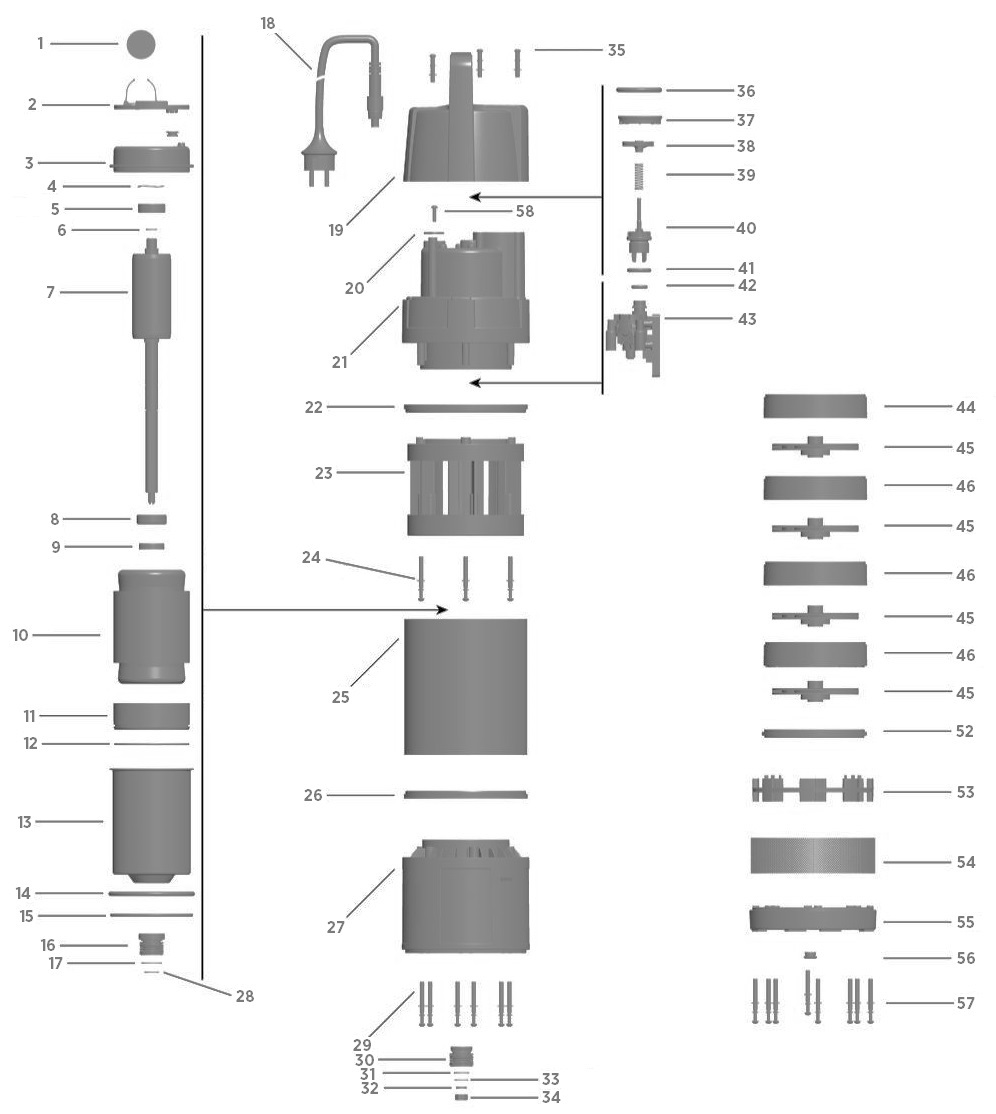 Lorsqu’il n’y a plus d’eau à pomper, l’appareil va s’arrêter automatiquement et lancer le cycle de protection contre le fonctionnement à sec. La pompe après 10 secondes d’arrêt, essayera de fonctionner pendant 30 secondes (Elle répétera cela trois fois). Si le niveau d’eau est toujours trop faible, la pompe se mettra alors en marche pendant 30 secondes dans 1h, puis 5h et enfin, toutes les 24h. L’appareil est à nouveau opérationnel dès qu’il est à nouveau immergé d’au moins 17cm dans l’eau.