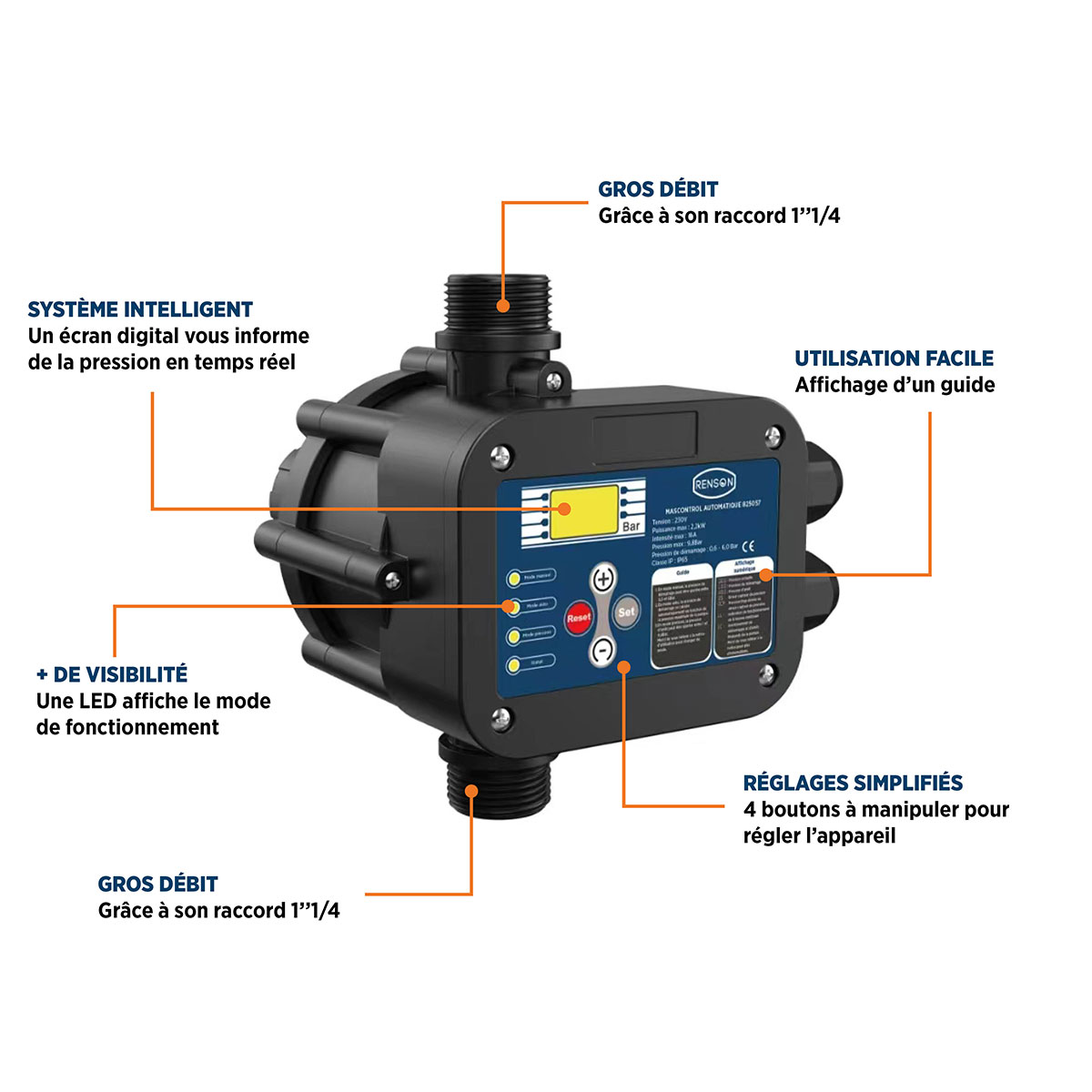 Ce Mascontrol au diamètre de 1"1/4 permet un débit important.
