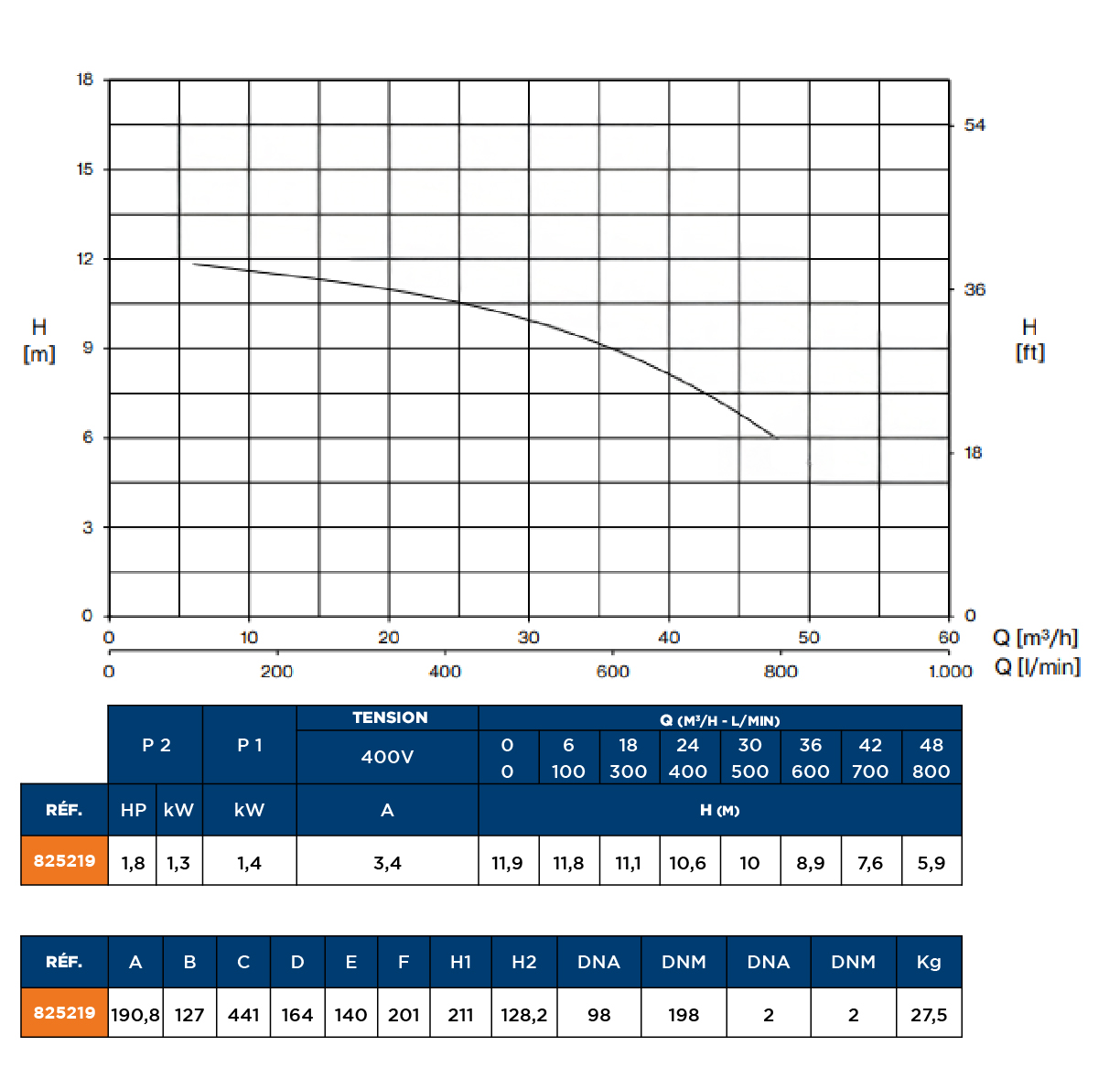 Pompe de circulation centrifuge monoroue à débit élevé, caractérisée par des brides de refoulement de 2”.