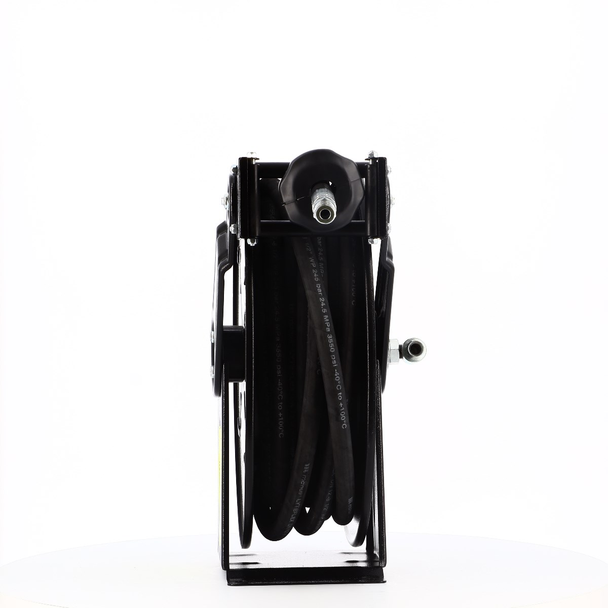Bras réglable afin de favoriser la sortie du flexible en fonction de l’installation de l’enrouleur