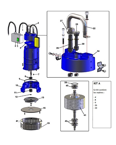 PRESSE ETOUPE DE FLOTTEUR POUR POMPE DE CHANTIER 1,5KW