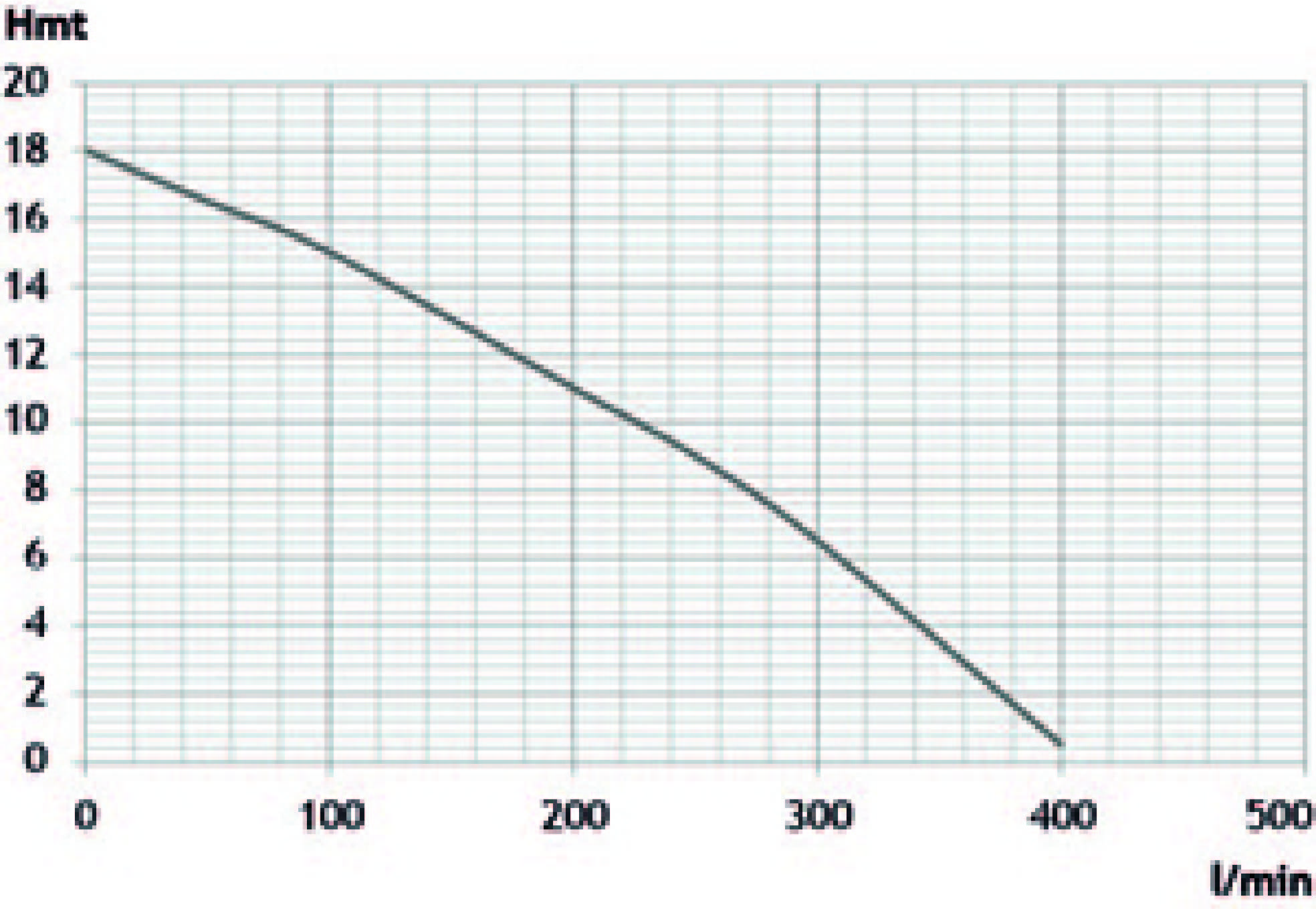 Pour HMT 18 mètres = débit de 0 m3/h ; 0 l/min