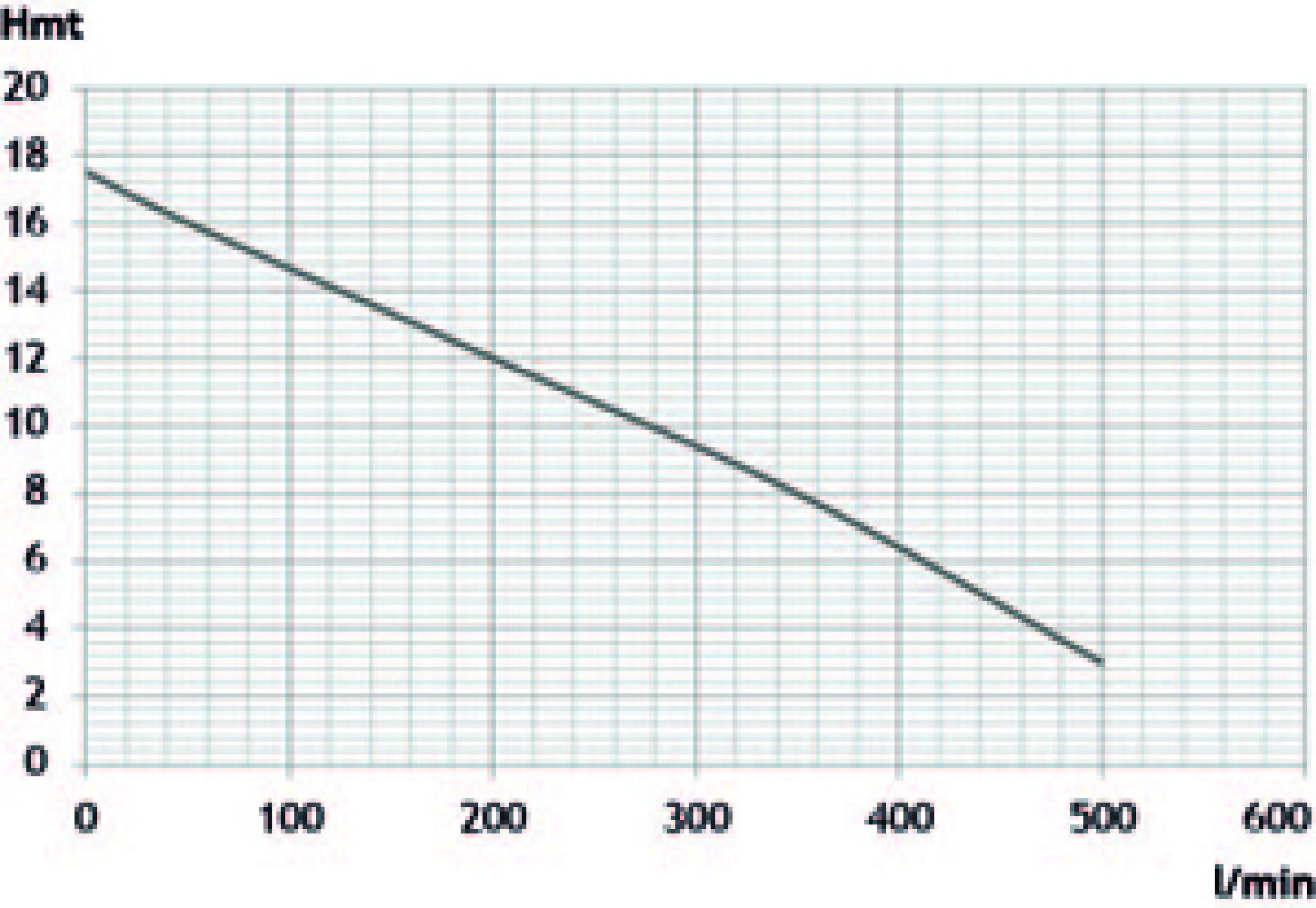 Pour HMT 17,5 mètres = débit de 0 m3/h ; 0 l/min