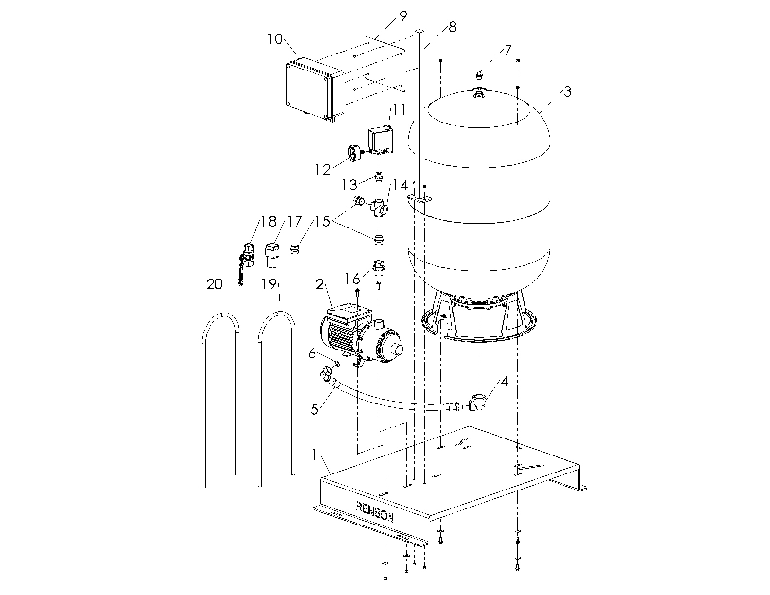 RESERVOIR A VESSIE VERTICAL 200L PRESSION MAX 10BARS