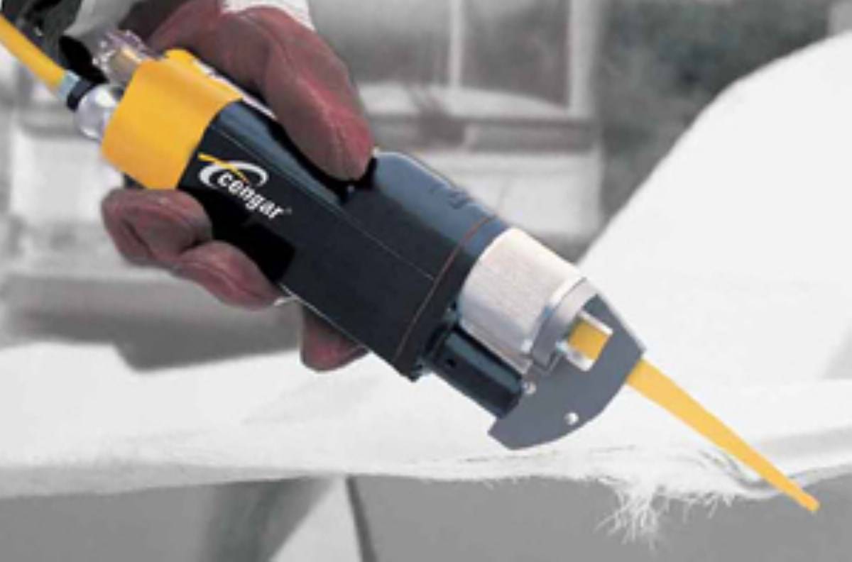 Légère et très maniable, elle est idéale pour les matières composites, les fibres de verre et les tôles minces ce qui la rend très appréciée dans les chantiers pour la navigation de plaisance, la construction de caravane et de mobil home, la carrosserie industrielle, etc., Livrée en coffret, elle est équipée d'une vanne d'arrêt, permettant de changer ses lames en toute sécurité et d'un système de lubrification permanente.