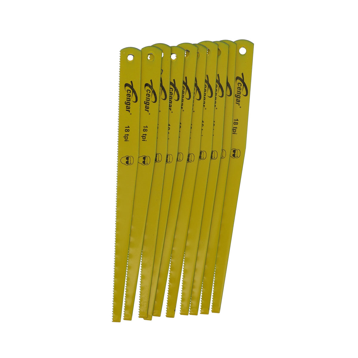 Lame bi-métal jaune fuselée L 152 mm, h 12 mm, 18 dents