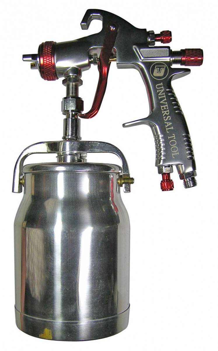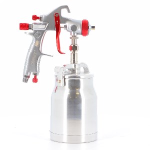 "Pistolet par aspiration conventionnel, sa buse ainsi que son aiguille en acier inoxydable le rendent bien adapté aux peintures et vernis hydrosolubles. Bonne atomisation et répartition avec contrôle précis du débit et de la forme du jet, corps et godet en aluminium, paroi intérieure du godet téflonisée, bonne ergonomie .