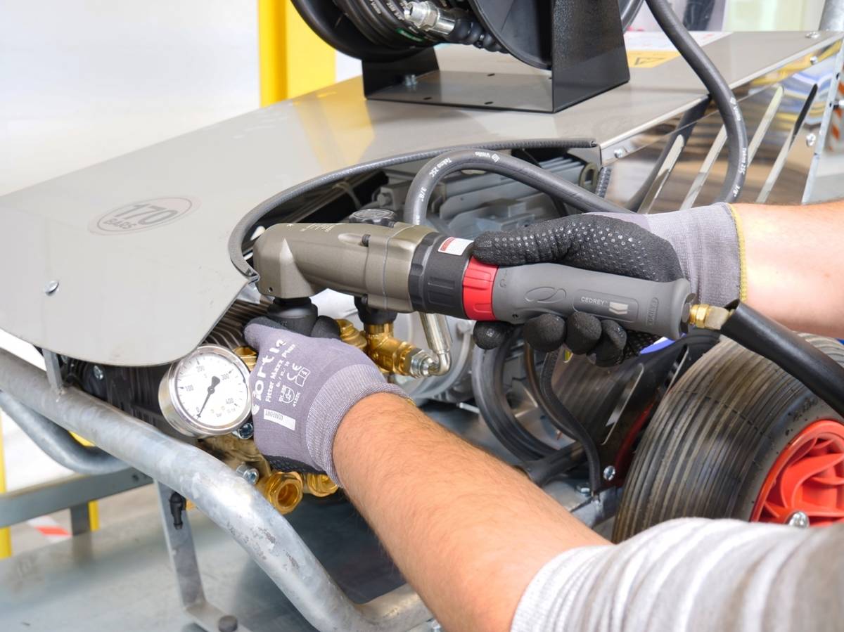 Pour des performances optimales et une durabilité de la machine, il faut impérativement utiliser un air épuré, lubrifié et régulé à 6,4 bar.