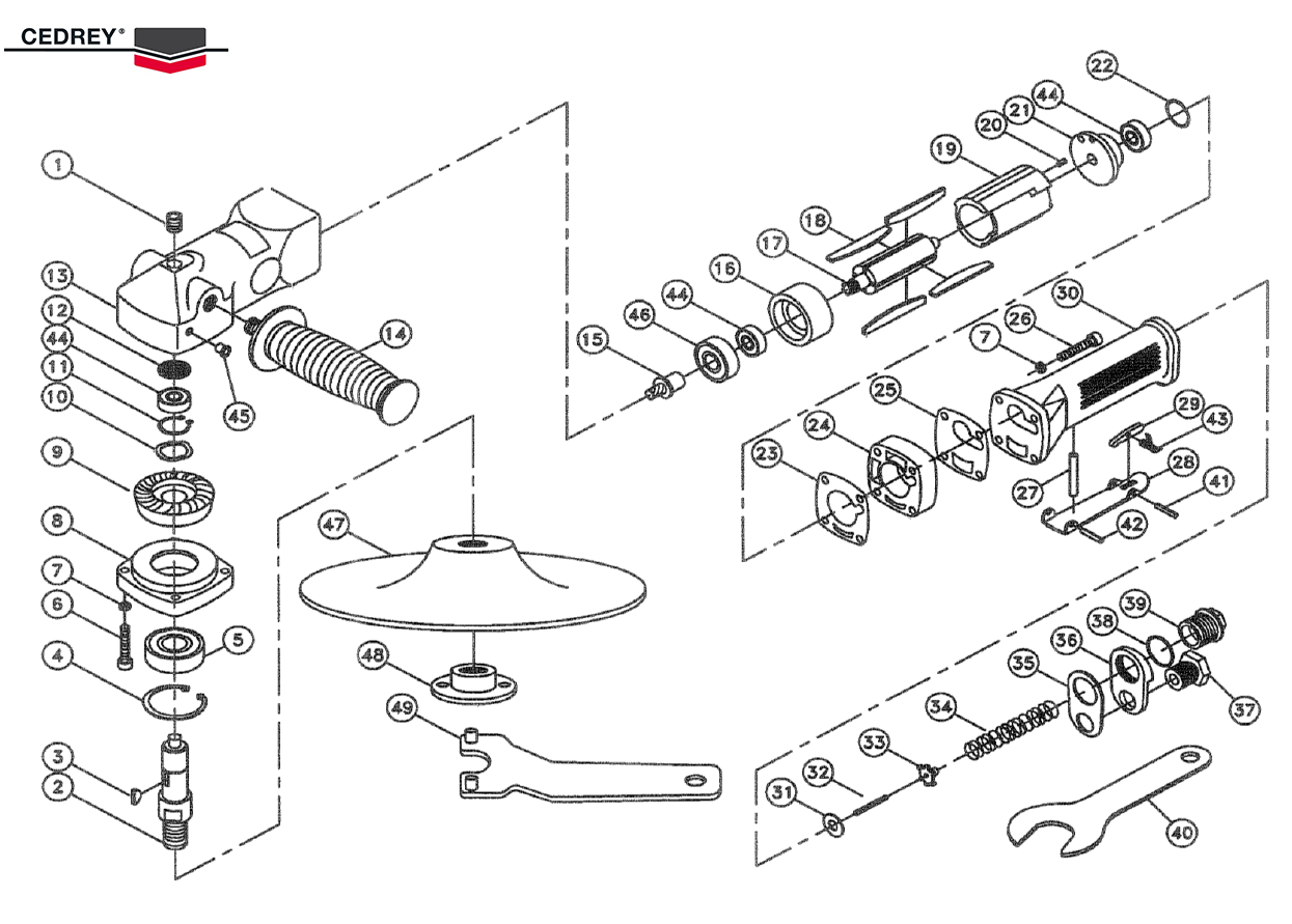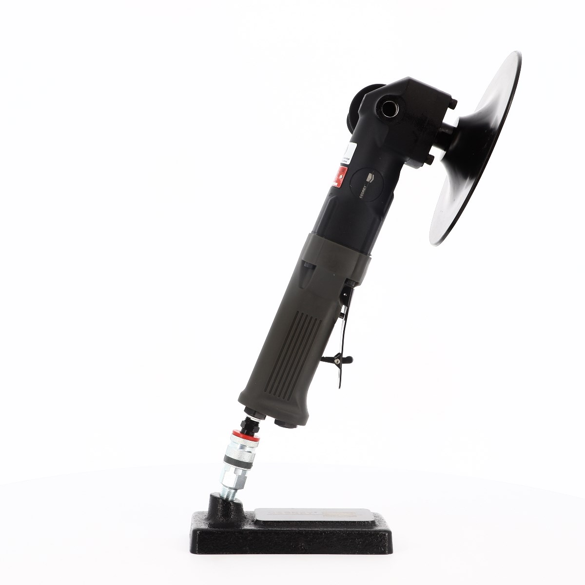 "Nouvelle génération de disqueuse offrant plus de puissance, un niveau sonore réduit, une ergonomie améliorée, une broche en M14 pour pouvoir utiliser les nombreux accessoires qui étaient, au préalable, réservés aux machines électriques. Un point de graissage est placé sur la tête pour l'entretien facile du renvoi d'angle, l'échappement arrière évite les projections d'huile ou de poussière sur la surface travaillée, un gainage isolant renforcé du corps et une poignée auxiliaire (droitier+gaucher) anti-vibratile garantissent un très grand confort. La gâchette de sécurité sont bien sûr de série.
